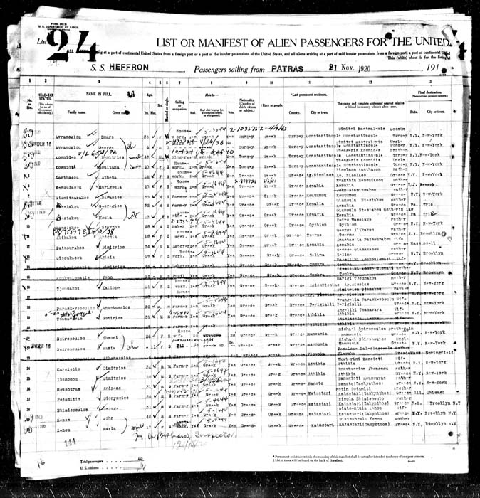 He arrived in US on 1920 with the steamship "HEFFRON" (Ellis Island Records) |
