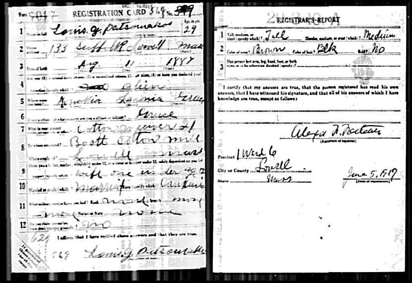 1917 War Registration Card